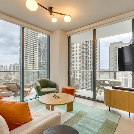 Er wordt een ingerichte keuken met een oven en een vaatwasser aan u aangeboden. Miami Internationaal ligt op afstand van 5 km van Luxe High-Rise Living! Crosby Condo With Ocean View en Northeast 6th Street & Northeast 1st Avenue busstation is binnen 5 minuten loopafstand ervandaan. Gasten kunnen net zo goed gaan zwemmen in een buitenzwembad.